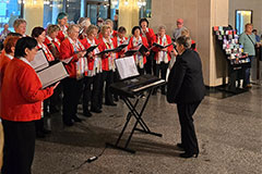Pünktlich 11.30 Uhr begann das Foyersingen. Gesungen wurde im Foyer der Eingangszone sowie in den Foyers der 3. Ebene Ost und West.