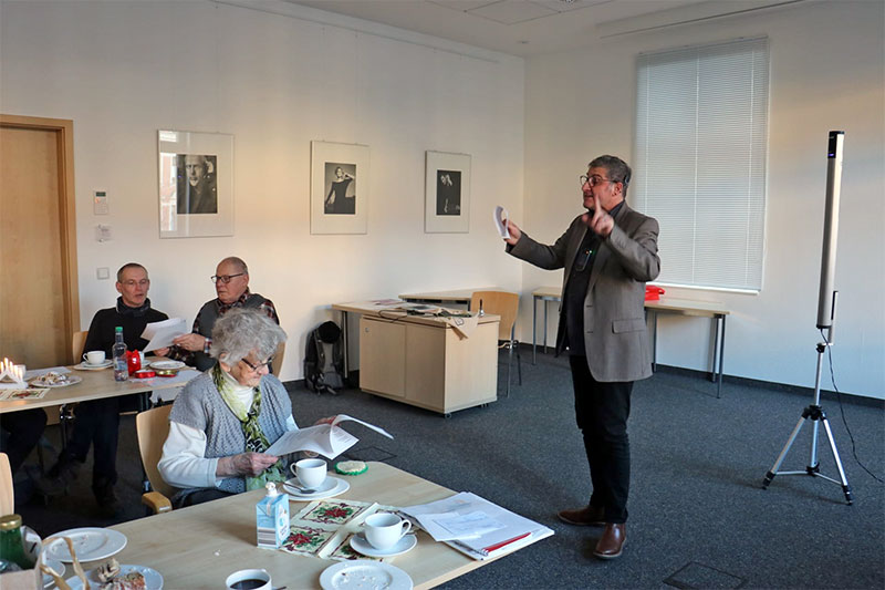 Nach dem die Vorsitzende des OV Leipzig Beate Schwemmer, den gemeinsamen Nachmittag eröffnete, sprach Marco Rüdiger, Leiter der CI-SHG, über die geplanten Kulturellen Aktivitäten, im Jahr 2026 zwischen der CI-SHG und dem OV Leipzig. Bei Kaffee, Stollen und Gebäck, konnte sich privat ausgetauscht werden. Gestärkt sangen wir das erste gemeinsame Lied, "Es ist für uns eine Zeit angekommen".